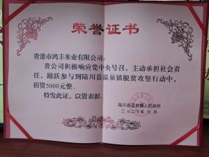 貴港市市鴻貴港豐米業(yè)有限公司成立于2001年,位于貴港市西江產(chǎn)業(yè)園區(qū)創(chuàng)新路,是一家集糧食生產(chǎn)、收購、儲存、加工、銷售運輸為一體的民營企業(yè),公司自有經(jīng)營工業(yè)用地120畝,其中:貴港市鴻豐米業(yè)30畝,貝龍兒分公司60畝,廣西鴻豐米業(yè)(欽州)30畝。目前企業(yè)資產(chǎn)總額11298萬元,建成糧食儲存?zhèn)}容量4.8萬噸,安裝先進設(shè)備精米生產(chǎn)線3條,年加工能力10萬噸,年產(chǎn)品銷售收入超億元,公司建立12895畝優(yōu)質(zhì)稻種植基地,其中富硒香稻3000畝,企業(yè)獲: “全國放心糧油示范加工企業(yè)”“自治區(qū)農(nóng)業(yè)產(chǎn)業(yè)化重點龍頭......[ 查看更多 ]